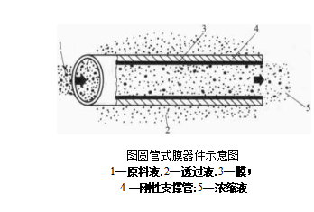 所谓圆管式膜器件是指在圆筒状支撑体的内侧或外侧刮制上半透膜而得的圆管形分离膜其支撑体的构造或半透膜的刮制方法随处理原料液的输入方式及透过液的导出方式而异.