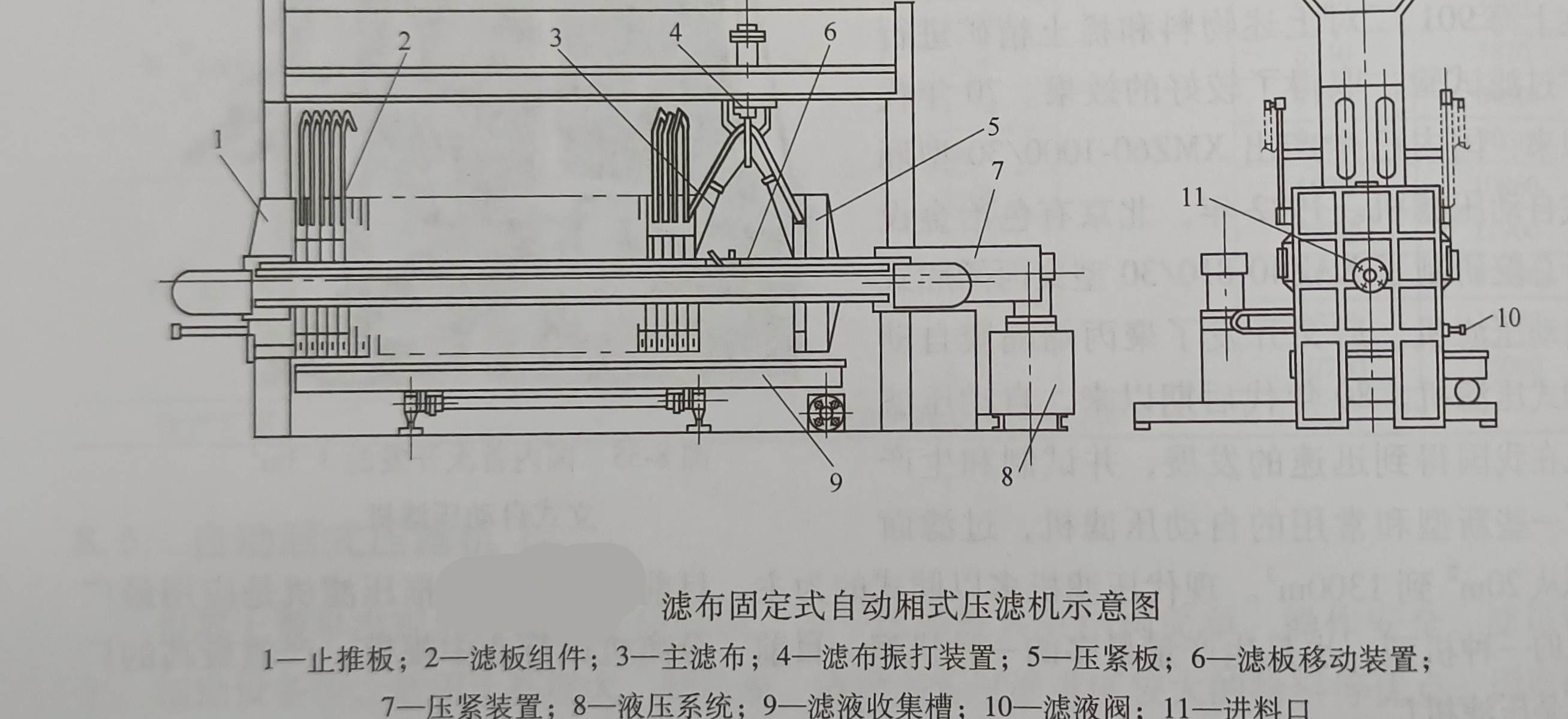 滤布固定式压榨型自动厢式压滤机滤板布置是采用厢式滤板与隔膜滤板交错排列,工作原理与无隔膜压榨型的大体相似.