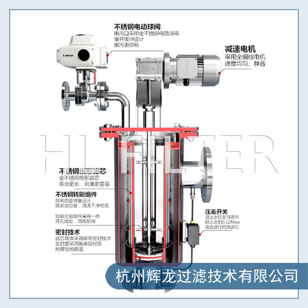 自动冲洗过滤器选型原则:进出口通径原则上过滤器的进出口通径不应小于相配套的泵的进口通径,一般与进口管路口径一致。