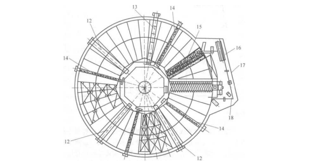 转台真空过滤机是一种连续真空过滤设备.其典型结构特征是在一环形平面上径向设置多头螺旋卸料.