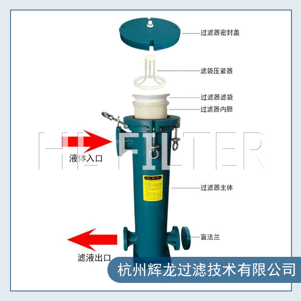 6、过滤精度高(1um--600um),滤袋环口与过滤器的内壁紧密接触,有效地防止液体旁漏,所有滤渣进入滤袋,避免产生二次污染。