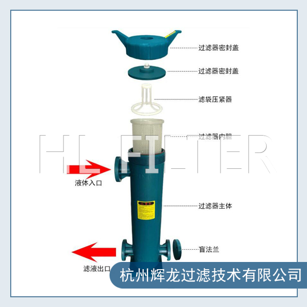 6、过滤精度高(1um--600um),滤袋环口与过滤器的内壁紧密接触,有效地防止液体旁漏,所有滤渣进入滤袋,避免产生二次污染。