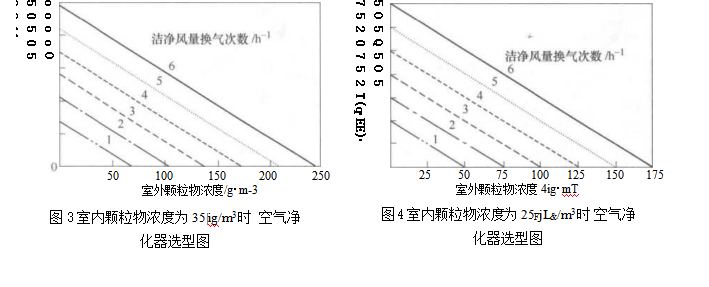 对比图3图4可发现,要求室内颗粒物浓度越低,则空气净化器的洁净风量换气次数需越大。