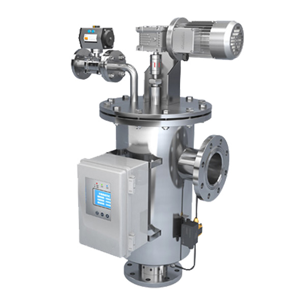 全自动自清洗过滤器(Automatic self-cleaning filter)是一种利用滤网直接拦截水中的杂质,去除水体悬浮物、颗粒物,降低浊度,净化水质,减少系统污垢、菌藻、锈蚀等产生,以净化水质及保护系统其他设备正常工作的精密设备。水由进水口进入自清洗过滤器机体,由于智能化(PLC、PAC)设计,系统可自动识别杂质沉积程度,给排污阀信号自动排污。